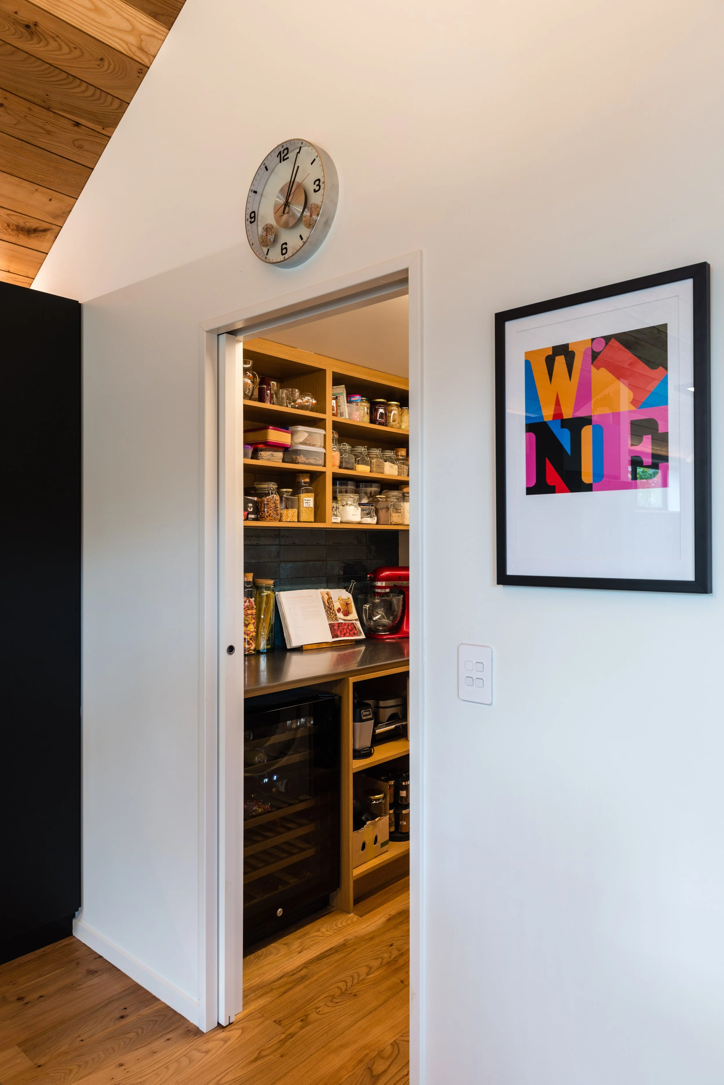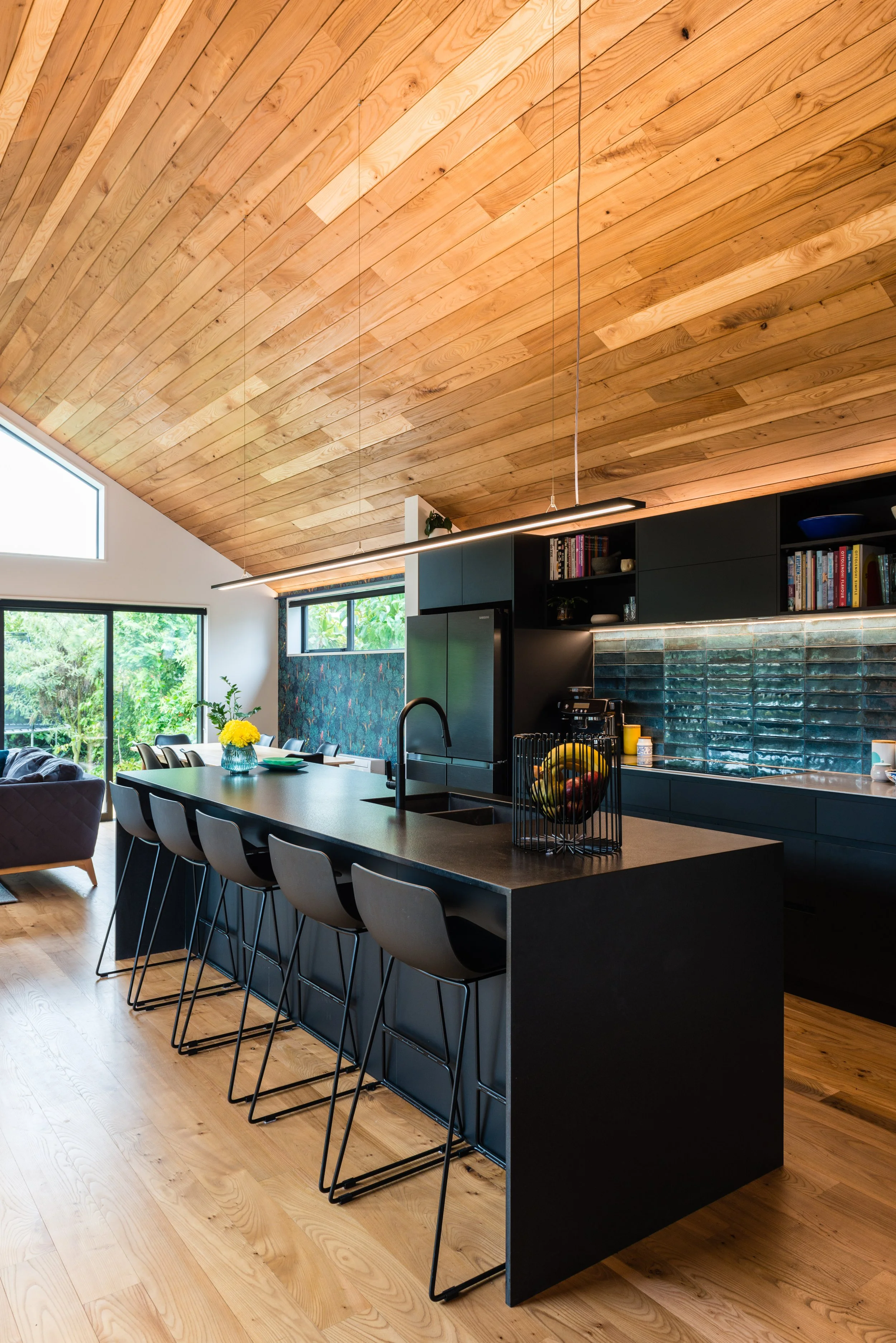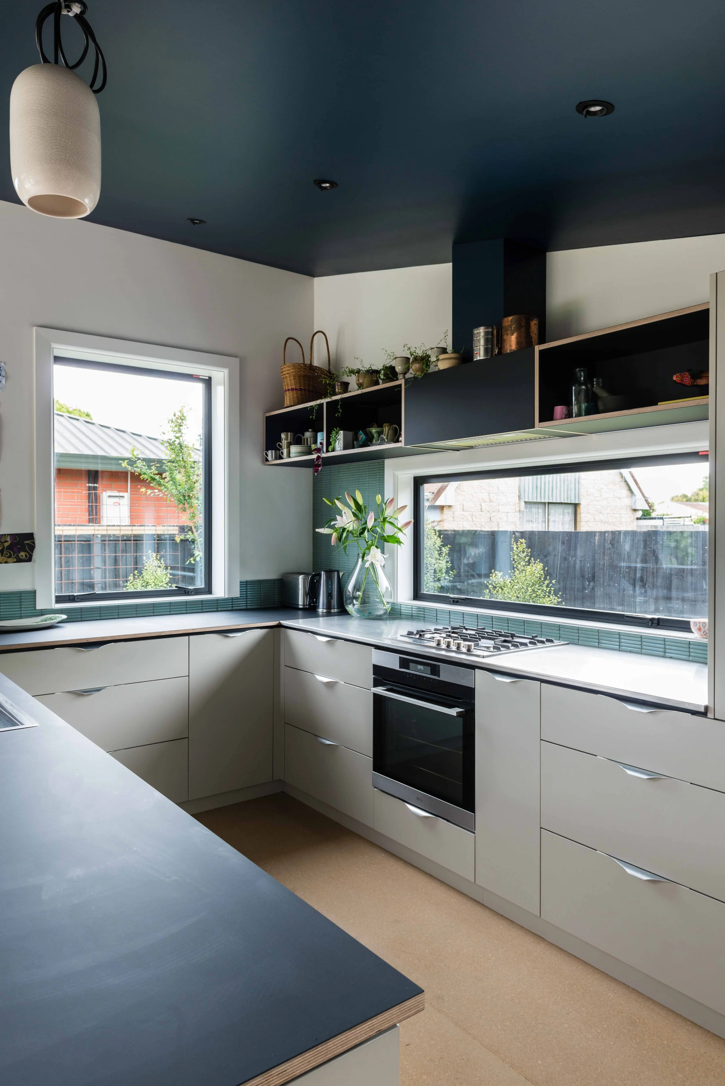 This 1950s bungalow, affectionately termed 'the gnome house' by the owners pre-extension, has been transformed to suit the needs of a growing family. A new kitchen and second living area create a functional, sociable space. Built-in seating not only provides a great spot to sit and chat but also doubles as storage.