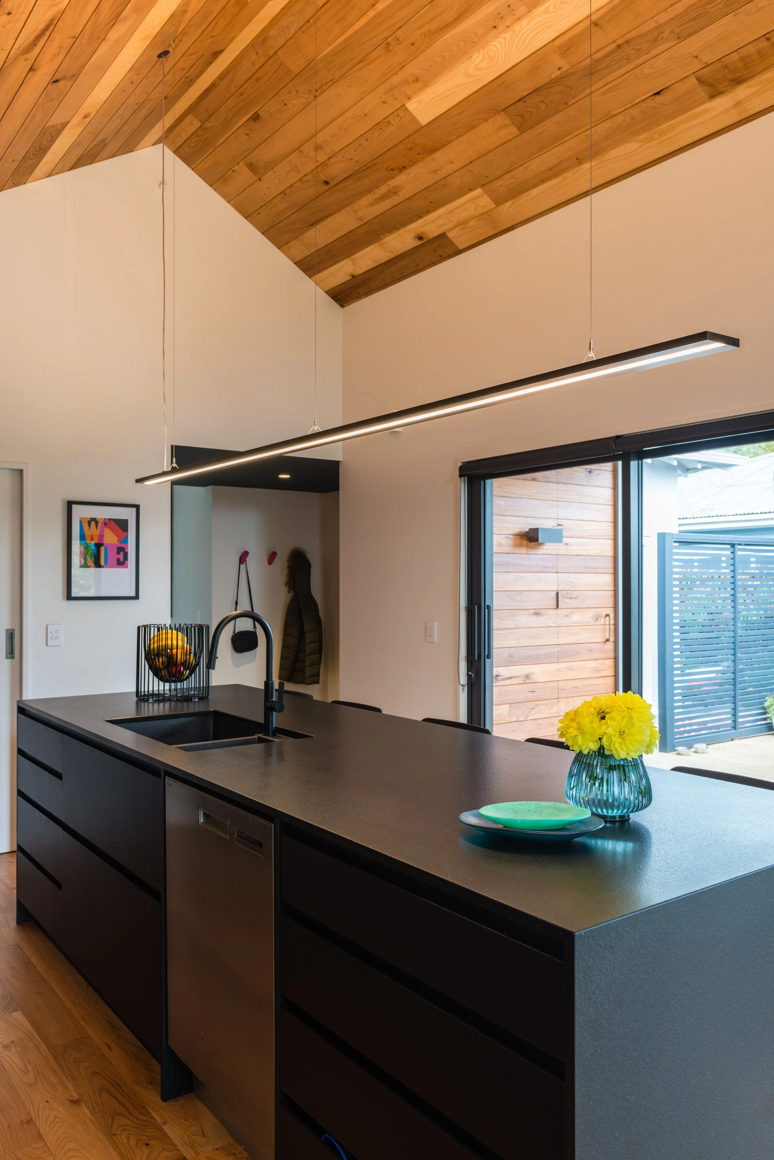 Our client wanted their early 1900s villa thoroughly updated, with the awful kitchen lean-to removed and replaced. We added a new kitchen and created a dining area, pantry and laundry along with a second living area with multiple openings to the garden to allow for real connection with the outside.