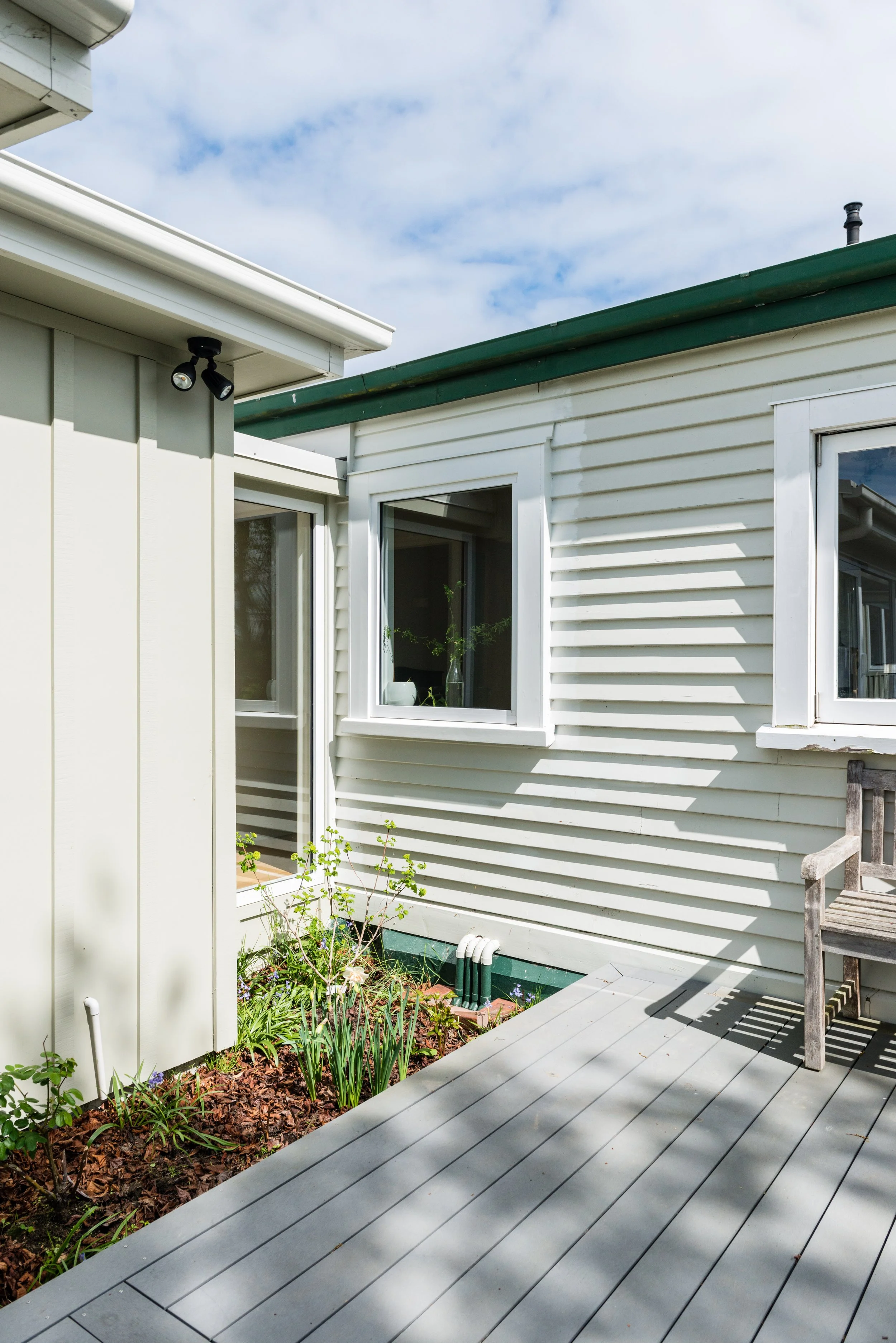 A sunny deck links the house to the garden and a new porch area defines the front door.